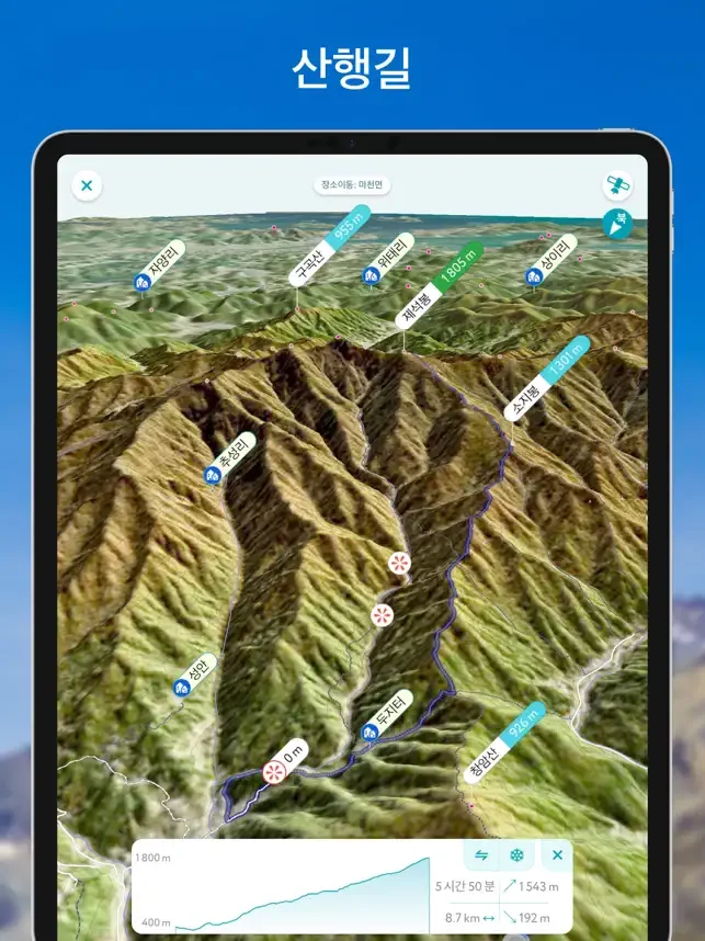 2) 아이폰 산넘어산GPS (등산, MTB, 계류낚시용 지도) 어플 스크린샷