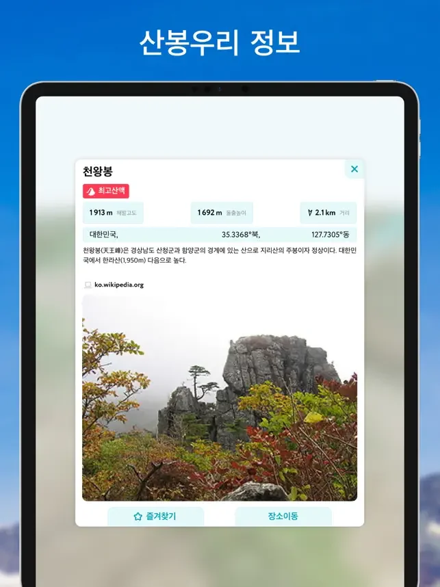 보호구역 뿐만 아니라 사진 및 위키백과의 추가적인 기사 등 산에 관한 상세한 정보를 확인하실