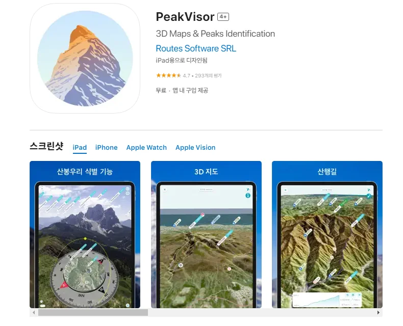 아래는 아이폰 PeakVisor 어플 스크린샷 정보입니다. PeakVisor 어플 스크린샷 정보를 확인하고 싶으신분은 아래를 참고하시기 바랍니다.