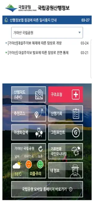 - 날씨 : 국립공원별 상세한 날씨 정보 제공
