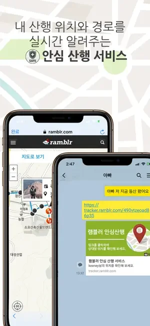 안전한 산행을 위해 지정한 가족 혹은 친구들에게 자신의 지도 상 위치를 실시간 (미리 지정된 시간 간격으로) 으로 공유하세요.