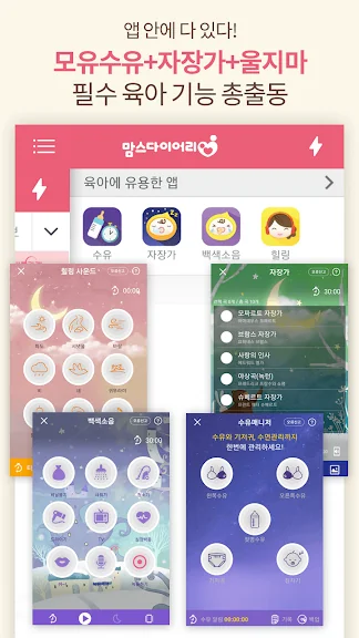 → 자장가, 빗소리, 폭포소리, 청소기 소리 등을 제공합니다.