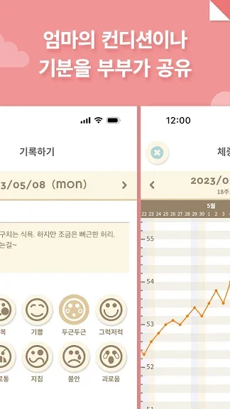 앱에 컨디션이나 검진 결과를 기록하면서 초음파 사진이나 체중 기록 등을 정리하여 관리할 수 있습니다. 그리고 만삭 사진이나 임신 기간 중의 추억을 부부가 함께 사진 일기로 기록할 수 있습니다.