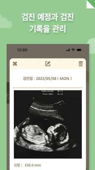 2) 진료 때 받은 초음파 사진을 등록하면 자동 분석 기능을 통해 자동으로 태아의 수치가 입력됩니다.