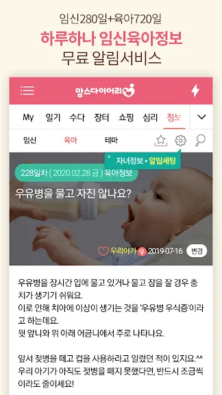 - 아이 월령에따른 출산부터 두돌까지 720일간의 육아정보를 제공합니다.