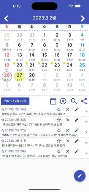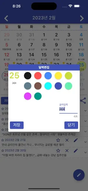 달력에 메모를 저장할수 있습니다.