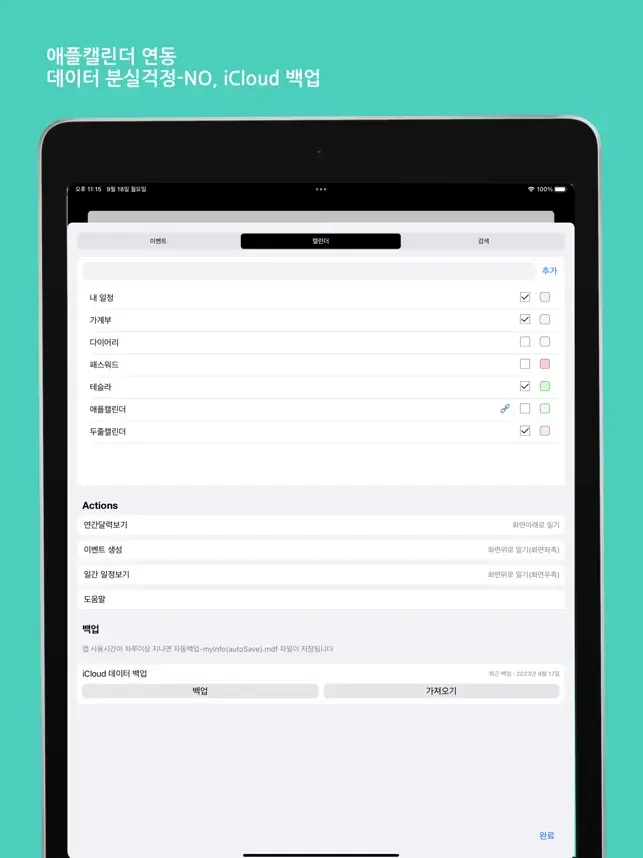 애플캘린더와 데이터 공유 및 편집 가능