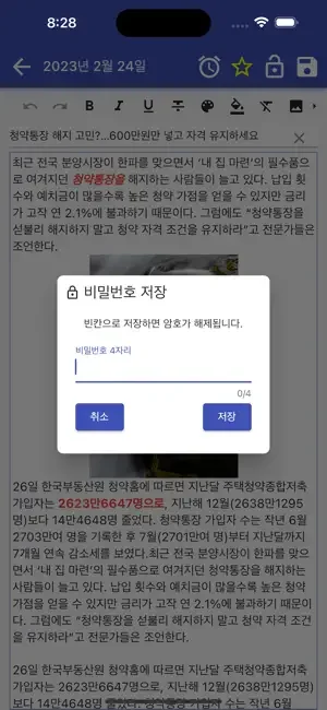 비밀메모를 작성 할 수 있습니다.