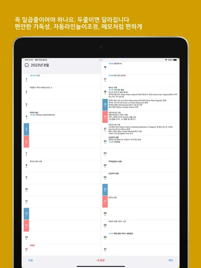 글자잘림없이 월간 일정을 한 눈에 보는 스마트 다이어리 캘린더