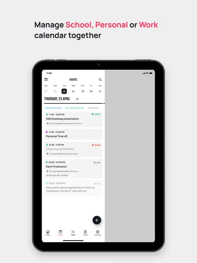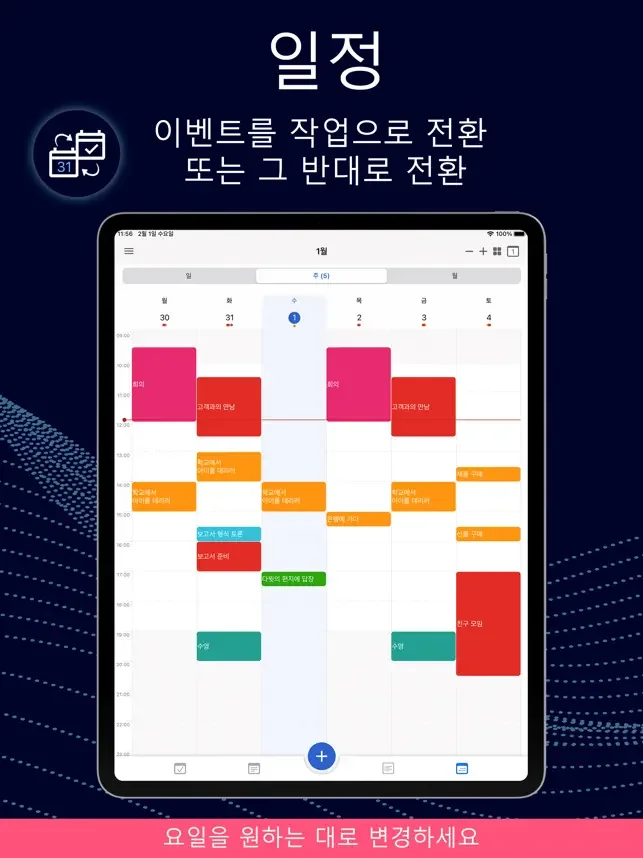 • 쉽게 작업으로 전환할 수 있는 캘린더 이벤트 생성, 편집 및 관리.