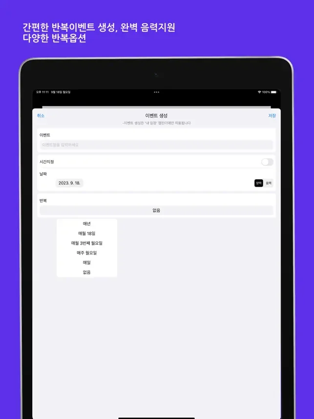 년간, 월간, 매주 등 반복 지원