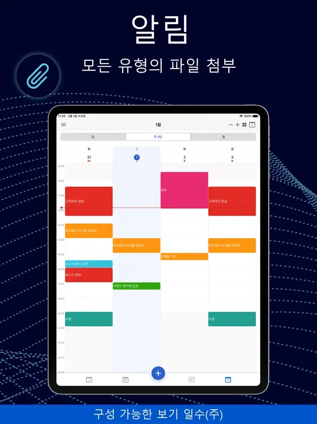 • 일, 주, 월 및 연도별 일정의 그래픽 시각화.