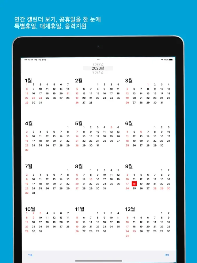 연간달력 보기 및 공휴일 표시