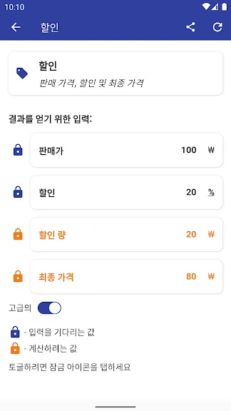 할인 계산 : 원래 가격, 할인, 판매 세 백분율 (해당되는 경우)을 입력하고 최종 가격과 절약 한 금액을 얻으십시오. 할인 백분율 또는 할인 금액을 입력 할 수 있습니다.
