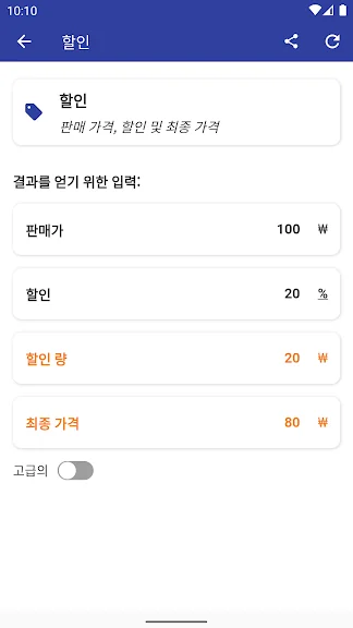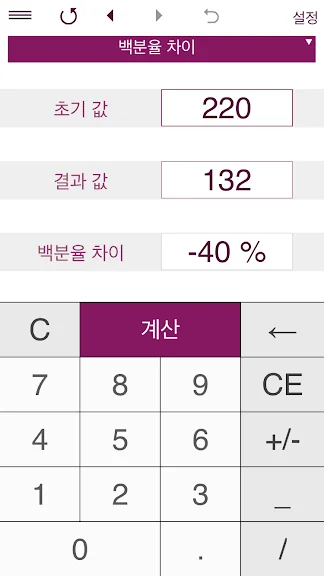 2) 백분율 계산기 어플 스크린샷