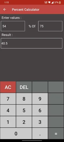 퍼센트 계산기 어플에 대한 스크린샷 정보가 필요하시다면 아래 이미지를 참고하시기 바랍니다.