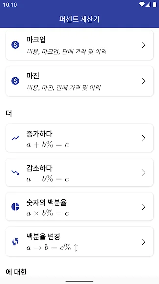 아래는 백분율 계산기 어플에 대한 스크린샷 정보입니다.