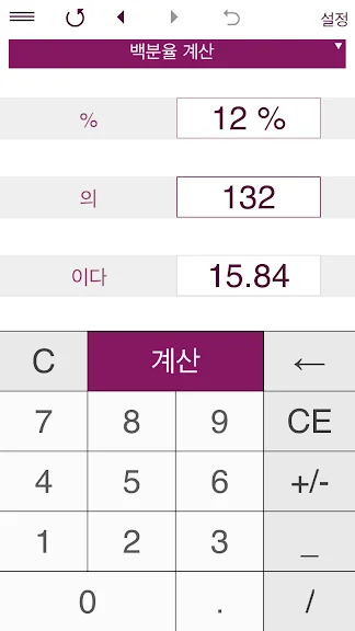 백분율 계산기 기능